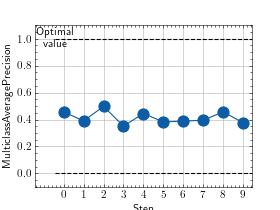 >>> # Example plotting multiple values >>> import torch >>> from torchmetrics.classification import MulticlassAveragePrecision >>> metric = MulticlassAveragePrecision(num_classes=3) >>> values = [ ] >>> for _ in range(10): ... values.append(metric(torch.randn(20, 3), torch.randint(3, (20,)))) >>> fig_, ax_ = metric.plot(values)