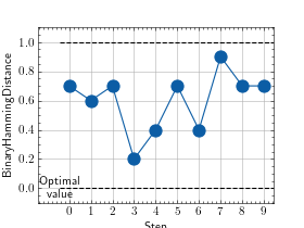 >>> # Example plotting multiple values >>> from torch import rand, randint >>> from torchmetrics.classification import BinaryHammingDistance >>> metric = BinaryHammingDistance() >>> values = [ ] >>> for _ in range(10): ... values.append(metric(rand(10), randint(2,(10,)))) >>> fig_, ax_ = metric.plot(values)
