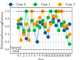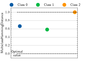 >>> # Example plotting a single value per class >>> from torch import randint >>> from torchmetrics.classification import MulticlassHammingDistance >>> metric = MulticlassHammingDistance(num_classes=3, average=None) >>> metric.update(randint(3, (20,)), randint(3, (20,))) >>> fig_, ax_ = metric.plot()