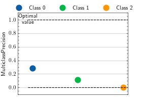 >>> from torch import randint >>> # Example plotting a single value per class >>> from torchmetrics.classification import MulticlassPrecision >>> metric = MulticlassPrecision(num_classes=3, average=None) >>> metric.update(randint(3, (20,)), randint(3, (20,))) >>> fig_, ax_ = metric.plot()