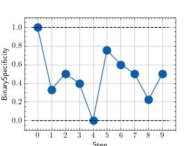 >>> from torch import rand, randint >>> # Example plotting multiple values >>> from torchmetrics.classification import BinarySpecificity >>> metric = BinarySpecificity() >>> values = [ ] >>> for _ in range(10): ... values.append(metric(rand(10), randint(2,(10,)))) >>> fig_, ax_ = metric.plot(values)