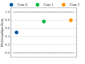 >>> from torch import randint >>> # Example plotting a single value per class >>> from torchmetrics.classification import MulticlassSpecificity >>> metric = MulticlassSpecificity(num_classes=3, average=None) >>> metric.update(randint(3, (20,)), randint(3, (20,))) >>> fig_, ax_ = metric.plot()