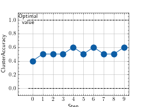 >>> # Example plotting multiple values >>> import torch >>> from torchmetrics.clustering import ClusterAccuracy >>> metric = ClusterAccuracy(num_classes=4) >>> values = [ ] >>> for _ in range(10): ... values.append(metric(torch.randint(0, 4, (10,)), torch.randint(0, 4, (10,)))) >>> fig_, ax_ = metric.plot(values)