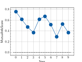 >>> # Example plotting multiple values >>> import torch >>> from torchmetrics.clustering import MutualInfoScore >>> metric = MutualInfoScore() >>> values = [ ] >>> for _ in range(10): ... values.append(metric(torch.randint(0, 4, (10,)), torch.randint(0, 4, (10,)))) >>> fig_, ax_ = metric.plot(values)