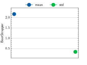 >>> # Example plotting a single value >>> import torch >>> from torchmetrics.wrappers import BootStrapper >>> from torchmetrics.regression import MeanSquaredError >>> metric = BootStrapper(MeanSquaredError(), num_bootstraps=20) >>> metric.update(torch.randn(100,), torch.randn(100,)) >>> fig_, ax_ = metric.plot()